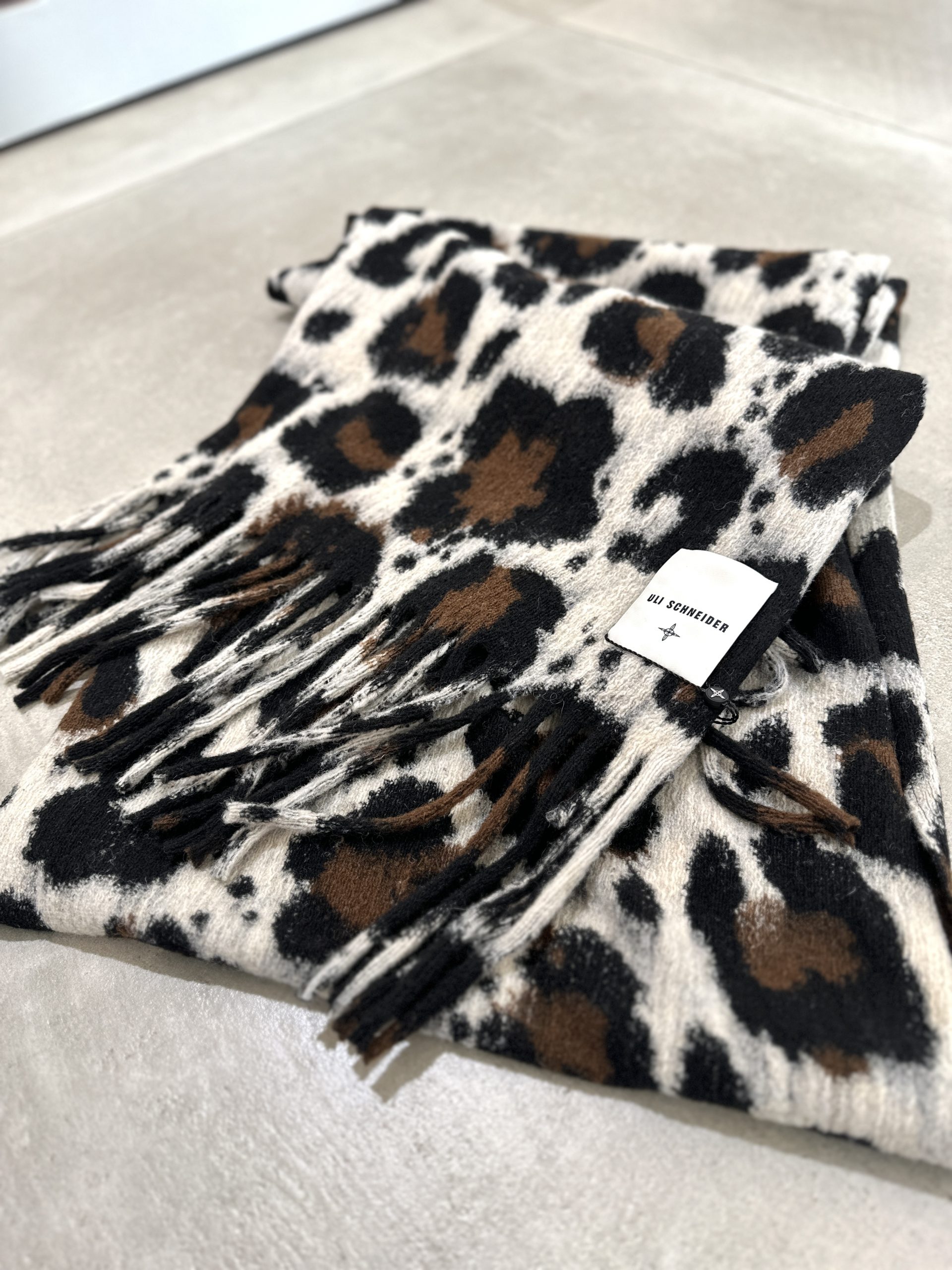 Die Fringed Wool Scarf hat eine Zusammensetzung aus 55% Wolle, 30% Polyester, 15% Polycarbonat.